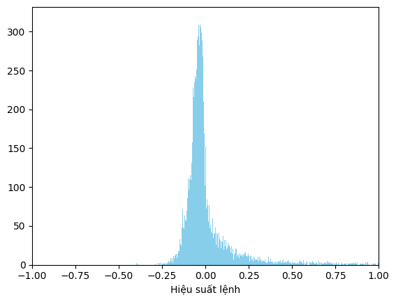 Đoạn code trên giả sử có hai chiều LONG và SHORT cho cổ phiếu, chúng tôi dùng để thống kê phương pháp mà không phụ thuộc vào thị trường. Kết quả cho thấy lợi nhuận trung bình mỗi lệnh là -0.1111% trong thời gian nắm giữ trung bình 12.4 ngày. Rõ ràng phương pháp này không có hiệu quả ngay cả khi chưa trừ phí và thuế giao dịch