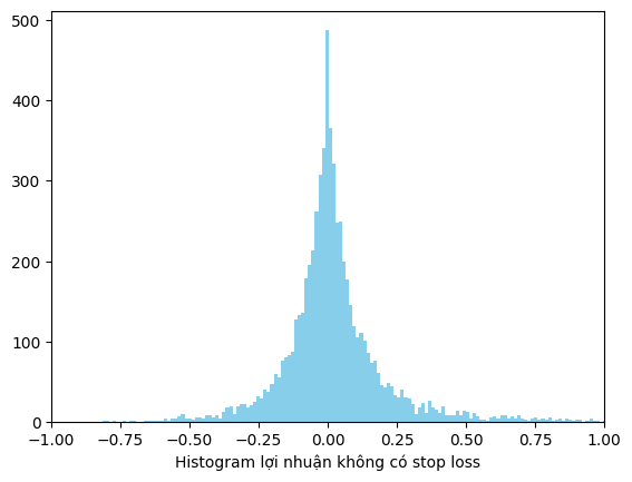 mean(order_profit) là 0.034622, tương đương với lợi nhuận trung bình mỗi lệnh là 3.4622%mean(order_profit_with_stoploss) là 0.024446, tương đương với lợi nhuận trung bình mỗi lệnh là 2.4446%Nó so sánh quá trình bạn cắt lỗ và trong thời gian chờ tín hiệu mua lại của phương pháp đó không vào bất kì lệnh mới nào, thì việc cắt lỗ trên một thị trường uptrend (bằng chứng là lợi nhuận kì vọng dương trong thời gian nắm giữ khoảng 50 ngày) sẽ làm giảm hiệu suất lệnh của bạn